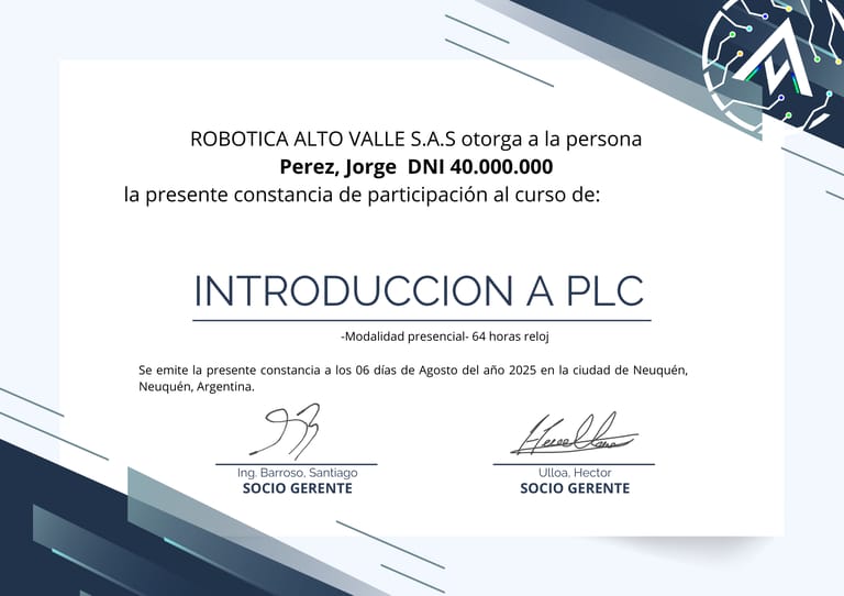 Durante 2 meses, los estudiantes explorarán los fundamentos de la automatización y aprenderán a programar y configurar sistemas controlados por PLC mediante proyectos prácticos y orientados a escenarios industriales reales. Con clases presenciales dos veces por semana, este curso garantiza una formación teórica y práctica integral.